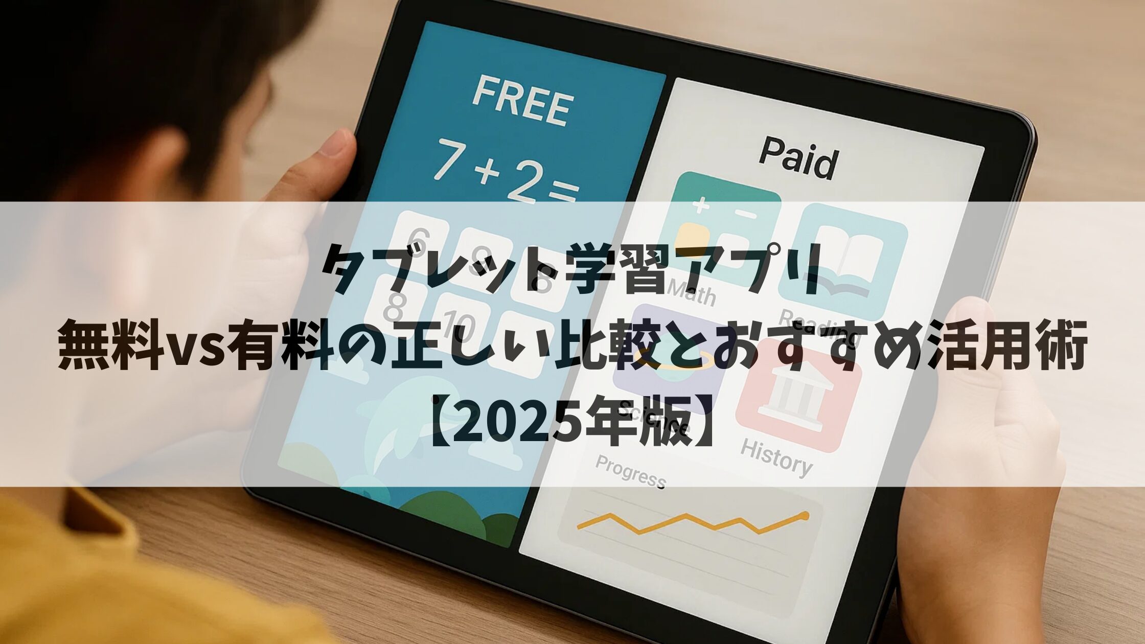 子育て タブレット学習アプリ|無料vs有料の正しい比較とおすすめ活用術【2025年版】 タブレット学習アプリの無料と有料を徹底比較。料金・機能・学習設計の違い、目的別の選び方、実例アプリ、併用のコツまで具体的に解説します。 2025.09.08 2025.09.10 子育て