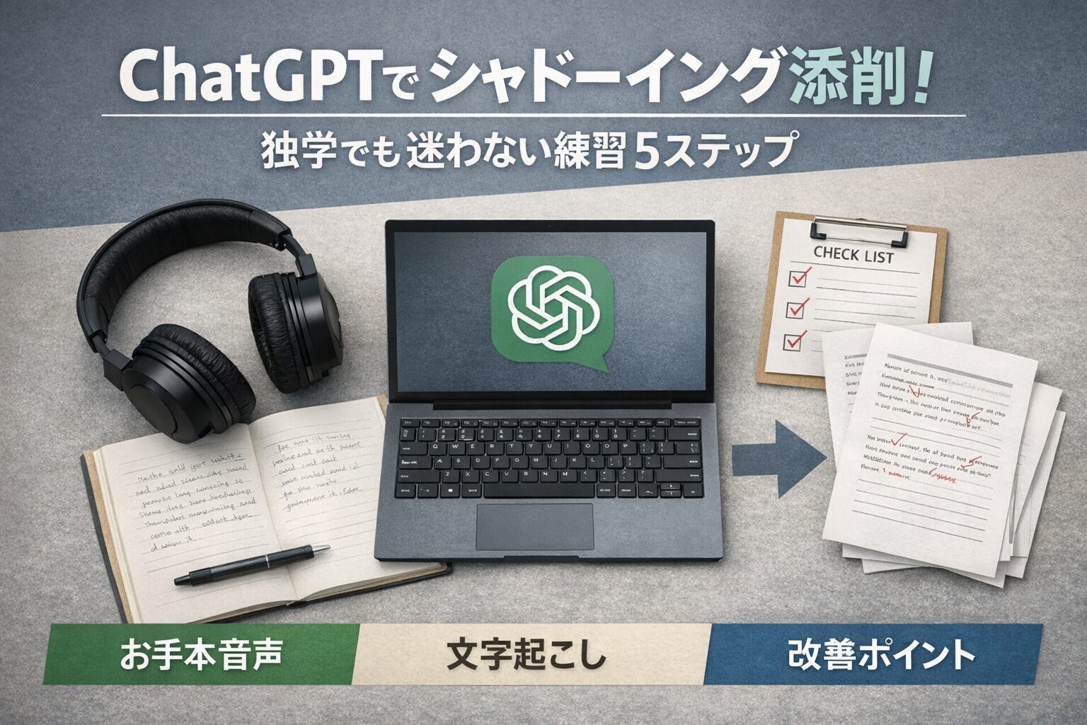この記事では、シャドーイングをChatGPTで添削して回すための迷わない5ステップを紹介します。さらに、コピペで使える目的別プロンプト集、つまずきがちな発音やリズムの直し方、毎日10分で回せる練習メニュー、成長が見えるチェック表までまとめました。