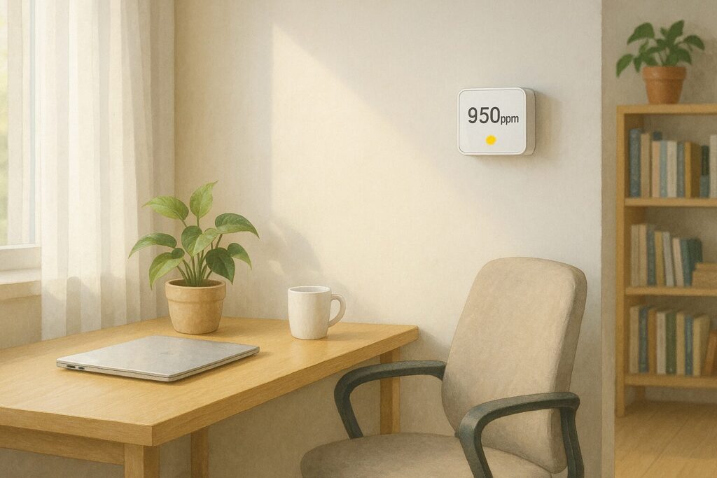 温度・湿度・他成分(におい等)・睡眠不足など、CO2以外の要因が絡むことがあります。センサーに温湿度表示があると切り分けしやすいです。CO2は“空気の全部”ではなく、換気タイミングの合図として活用するのが賢いやり方です。