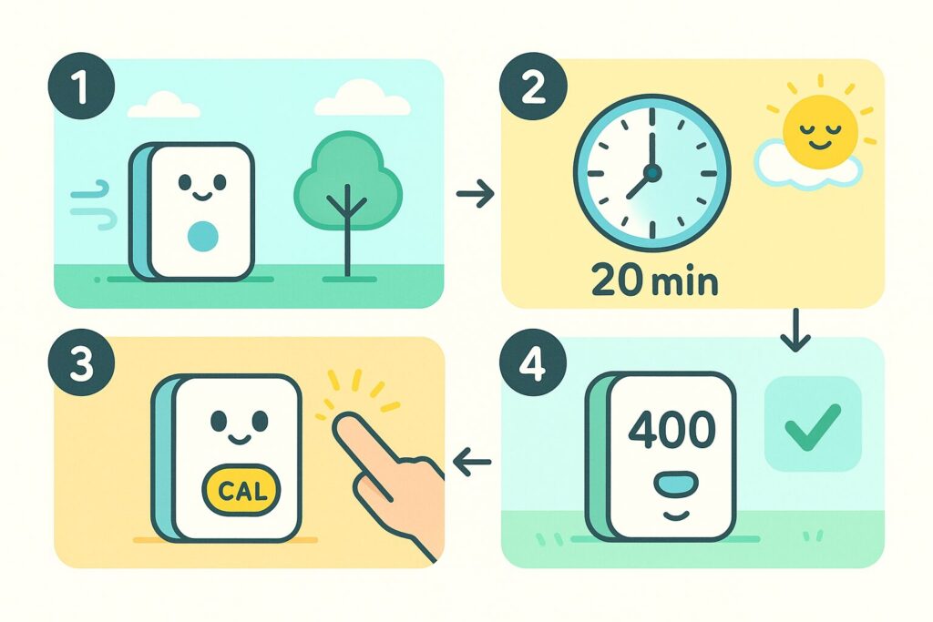 計量カップの“0位置合わせ”と同じで、CO2センサーもときどき整えるだけで信頼度がグッと上がります。コツはABC(自動校正)の向き不向きを見極め、屋外での手動校正を定期的に差し込むこと。取説最優先を前提に、在宅向けの運用だけサクッと固めます。