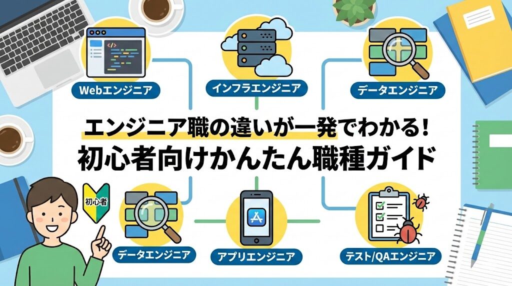 読み終わる頃には、エンジニアの世界がパッと開けて、あなたに合いそうな道が自然と見えてきますよ!一緒にゆっくり理解していきましょう。