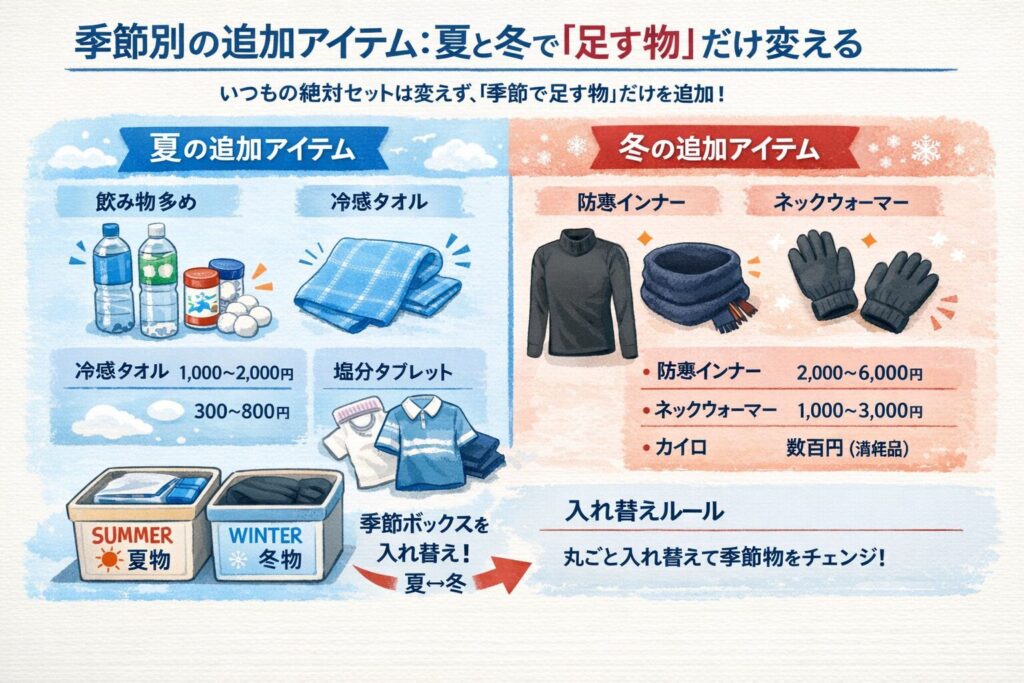 6. 季節別の追加アイテム:夏と冬で「足す物」だけ変える