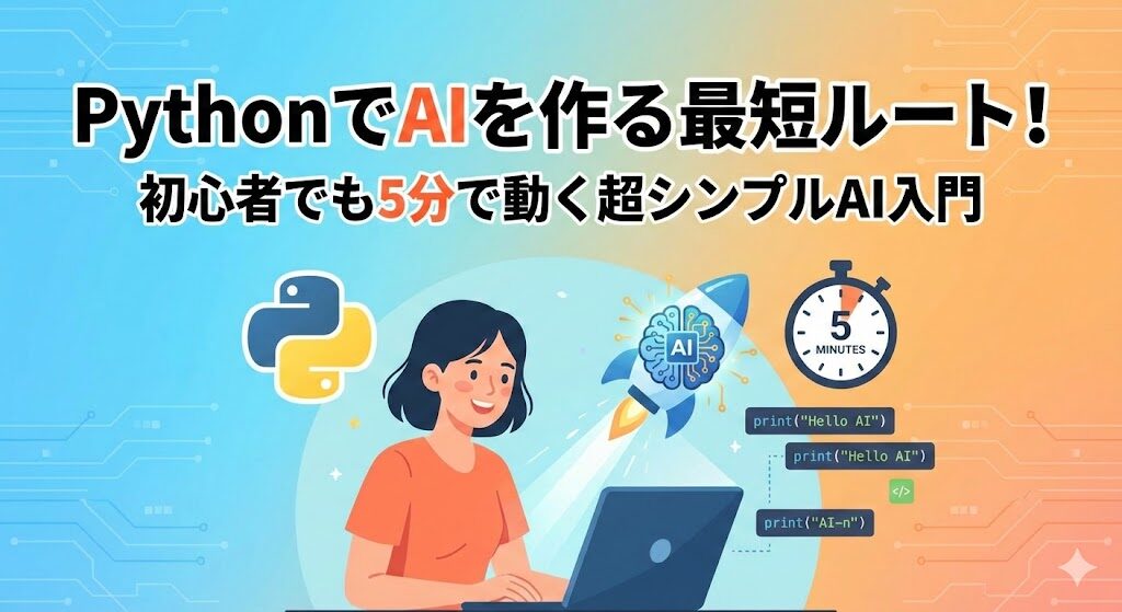 「AIってなんだかむずかしそう…」って思われる方、けっこう多いんですよね。でも実は、Pythonをちょこっと動かすだけで、ほんの数行のコードで自分だけのAIが作れちゃうんです。しかも、今日はそれを5分で体験できる方法だけにギュッとしぼってお伝えします。