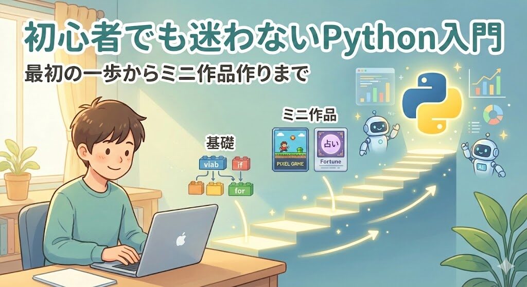 Pythonを始めるときって、「結局どの順番で勉強すればいいの?」って迷いやすいんですよね。