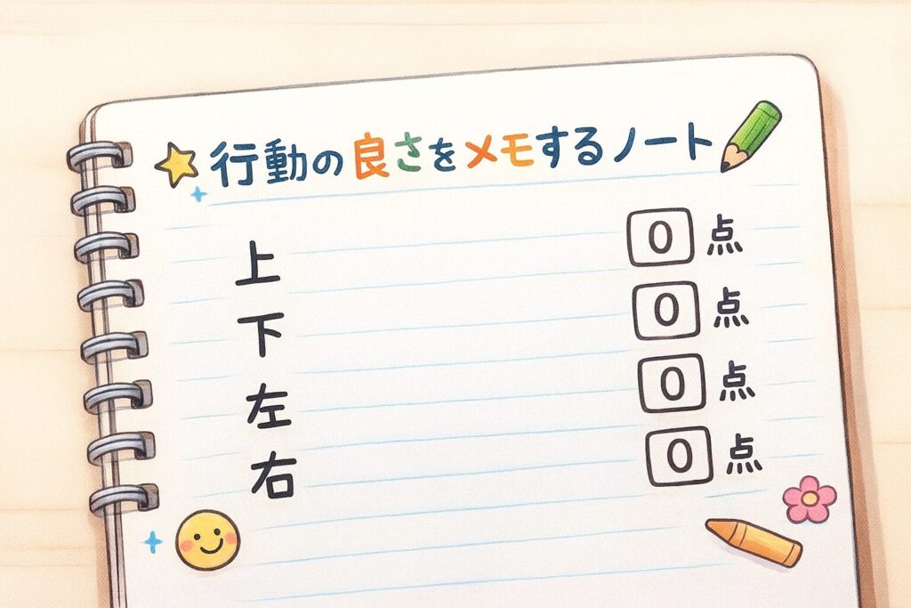 「今日の行動はどうだった?ノートの点数を少しだけ書きかえよう」