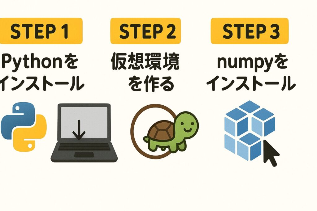 ① Python を用意する → ② 仮想環境をつくる → ③ 必要なライブラリを入れる