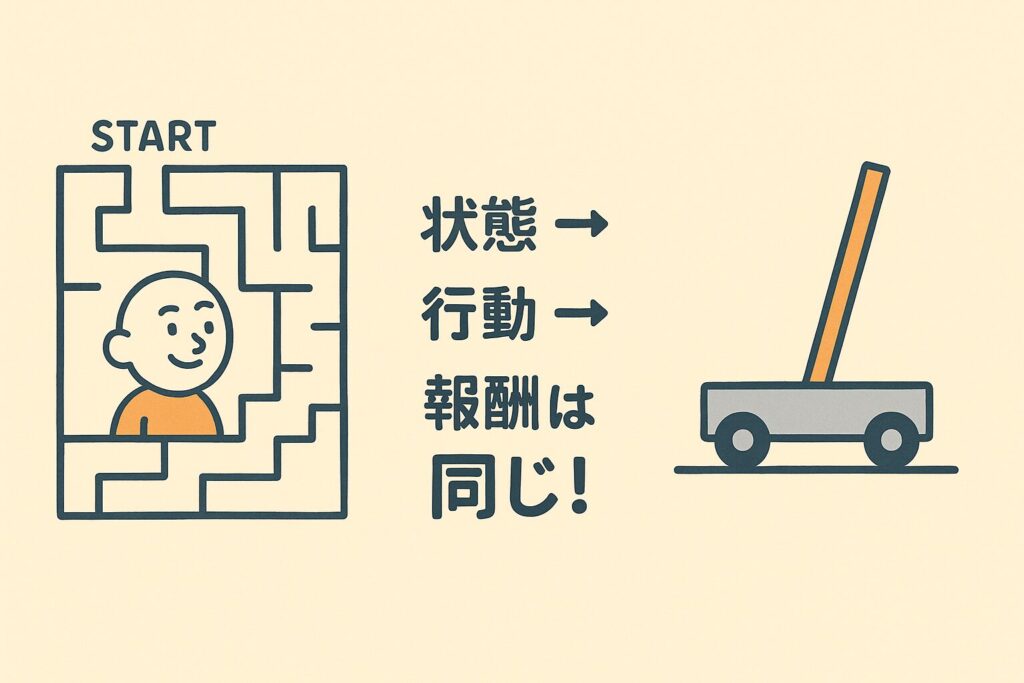 紙迷路で“しくみ”がわかっている方なら、Gymnasium でも CartPole でも、実はやっていることは同じ。