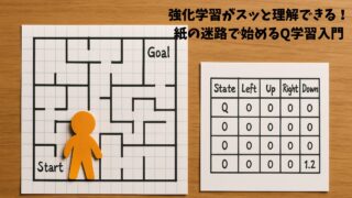 Q学習は、強化学習の中でも“いちばん最初に触ると理解しやすいタイプ”です。理由はシンプルで、数式より「表」を使って学ぶからなんです。むずかしい計算をしなくても、「あ〜、このマスでは右に行ったほうが得なんだな」みたいな感じで理解できます。
