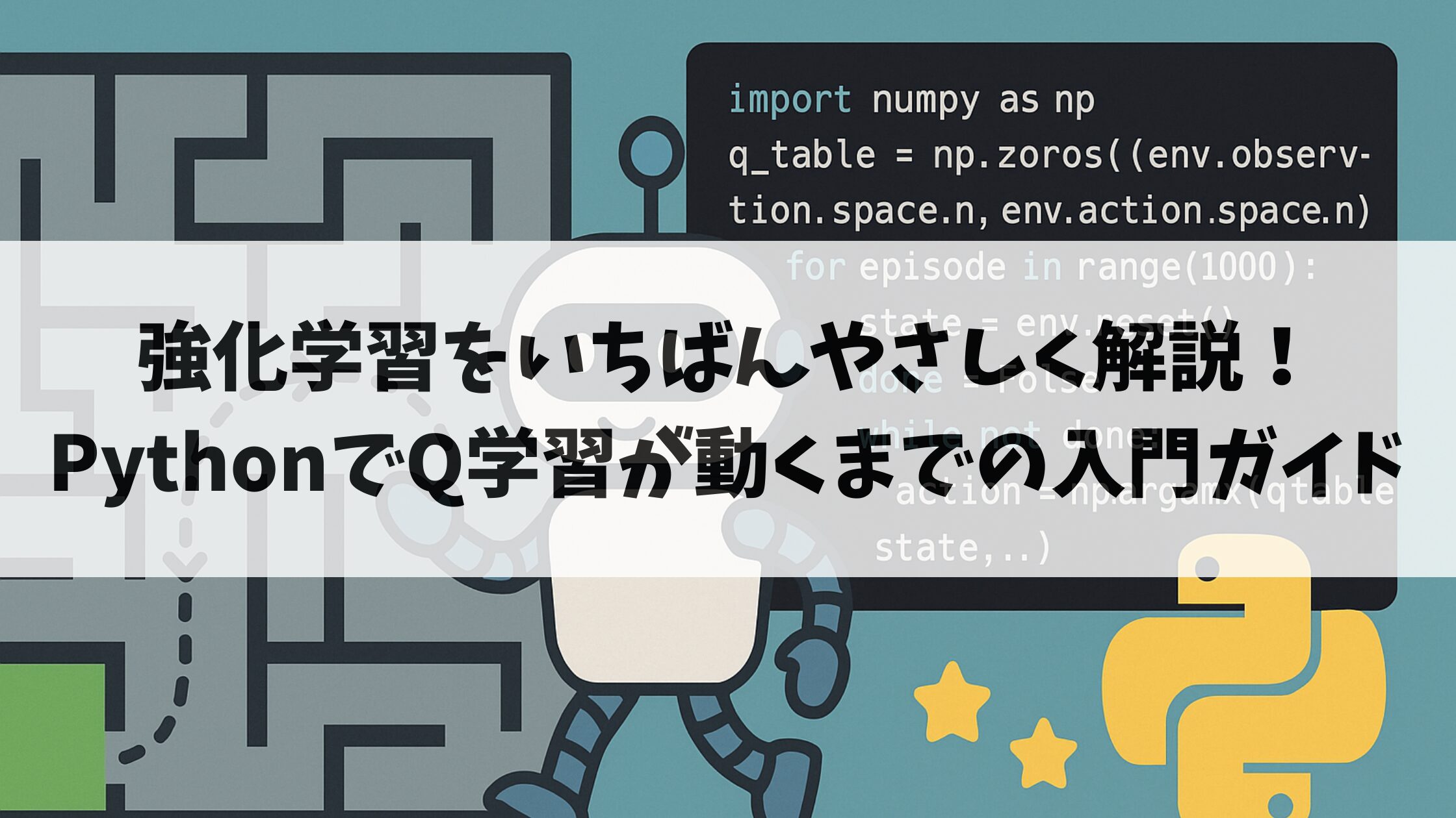 さらに、この記事の後半では Q学習が30行くらいで動くミニコード も紹介します。コピペで実行できるので、「とりあえず動かしてみたい」という方でも大丈夫です。環境構築のつまずきポイントも先回りで解決するので、初学者の方でも安心して読み進められます。